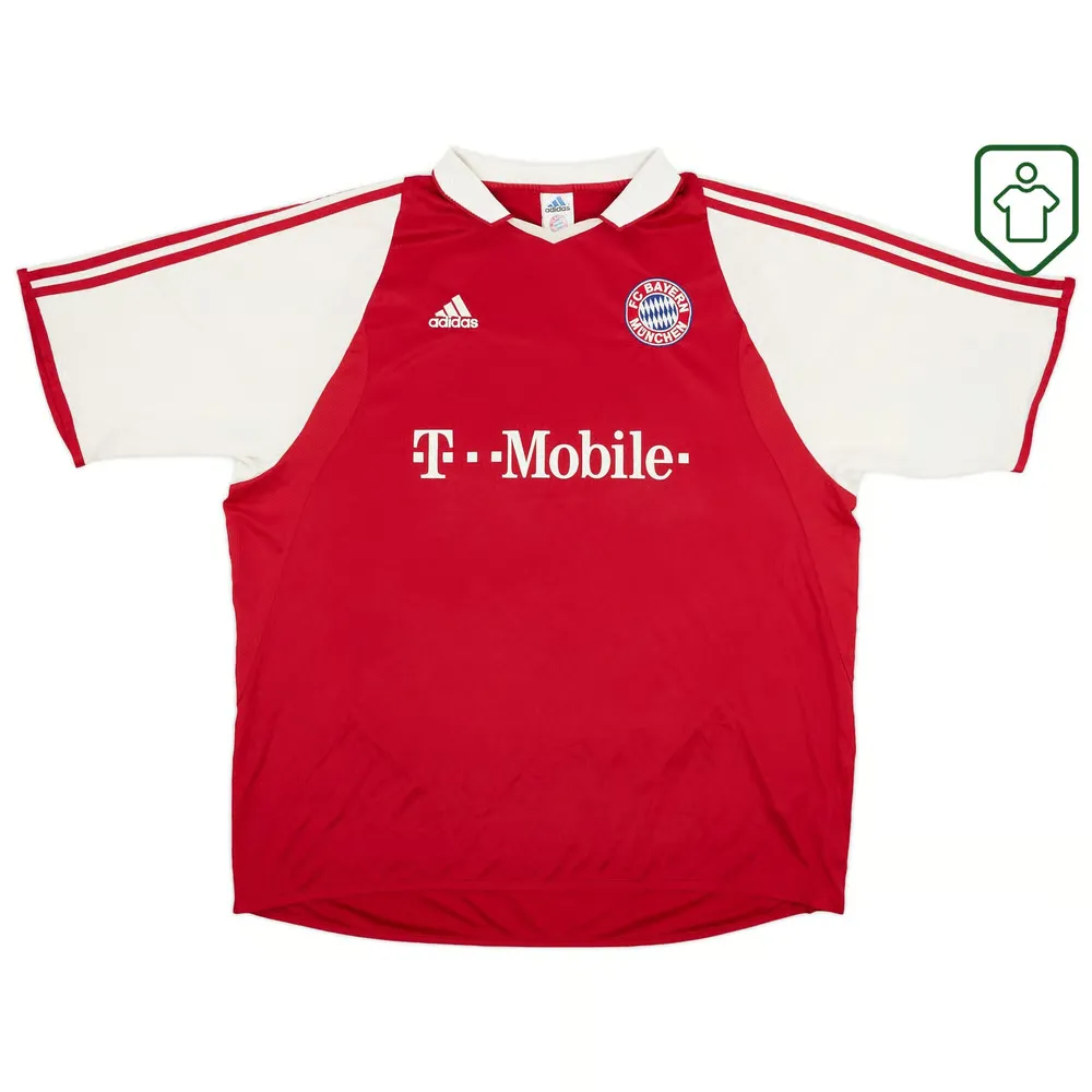 Maillot domicile porté lorsque le FC Hollywood a terminé deuxième en Bundesliga et atteint les huitièmes de finale de la Ligue des champions. Le recrutement estival important de Roy Makaay, en provenance de Deportivo La Corogne, a garanti une efficacité offensive, même après le départ de Giovane Élber, meilleur buteur récurrent. Le Bayern a terminé six points derrière la surprise Werder Brême. De grandes victoires à domicile contre Mönchengladbach, Dortmund, Hertha et Freiburg ont marqué cette saison pleine de promesses. Le Bayern a de nouveau affronté un Real Madrid solide en phase à élimination directe de la Ligue des champions, s’inclinant sur les deux matchs.