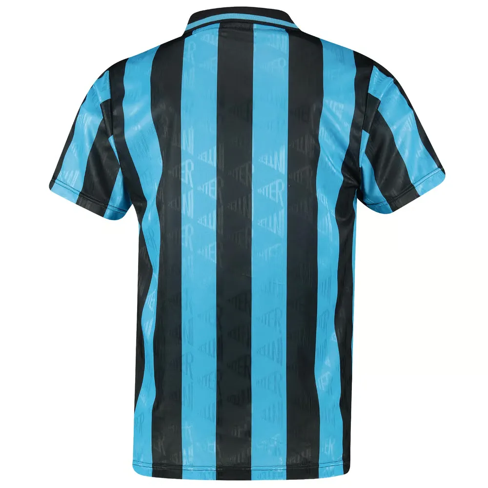 Un véritable classique Nerazzurri, le maillot Inter Milan 1992 est un incontournable pour les supporters de tout âge. Le maillot domicile porté par Ruben Sosa ou Dennis Bergkamp lors du deuxième triomphe en Coupe UEFA en 1994 contre Salzbourg, avec les rayures emblématiques noir et bleu d’Inter, col boutonné et écusson brodé avec étoile pour un look classique et élégant.