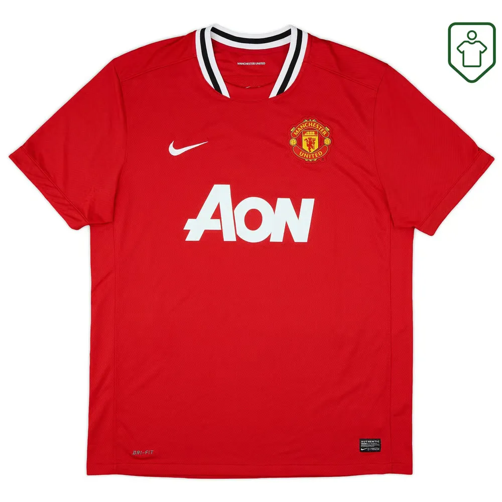 Maillot domicile porté lorsque l’équipe de Sir Alex Ferguson a manqué de peu un 20e titre de champion au profit des rivaux locaux Manchester City lors d’une journée finale iconique. Malgré une victoire à Sunderland, United a été devancé de façon spectaculaire par deux buts en temps additionnel d’Edin Džeko et Sergio Agüero, donnant la victoire 3-2 à City et les devançant au nombre de buts.